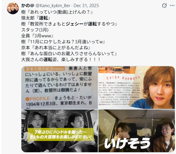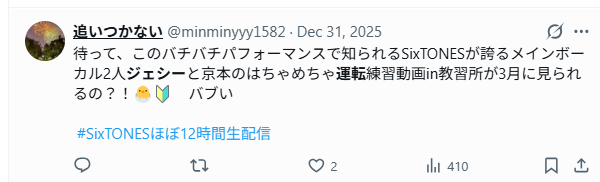 そして2025年のSixTONESほぼ12時間生配信での教習所ロケ発言。